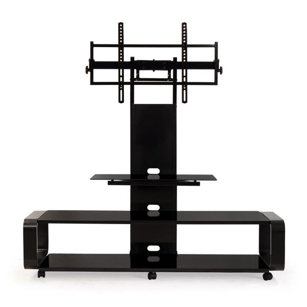 Upgrade your home entertainment experience with the TD685B Bend Wood TV Stand/Cart. This versatile stand is designed to fit most 35″-85″ plasma, LCD, LED, OLED, and QLED TVs weighing up to 150 lbs. and features a height adjustable TV mounting system with a VESA compliant size of 600 x 400 mm, 15° pivot left or right, and 12° tilt up or down for the perfect viewing angle.